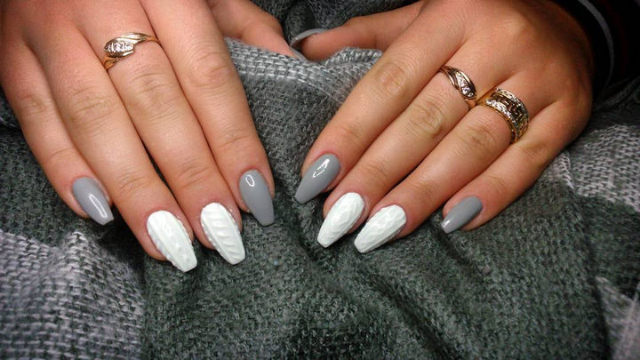 Cold winter nights are the perfect time to put on a cozy winter sweater and feel warm and fuzzy all over. Cable knit sweaters are the inspiration for these winter sweater nails.