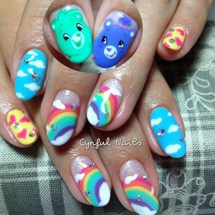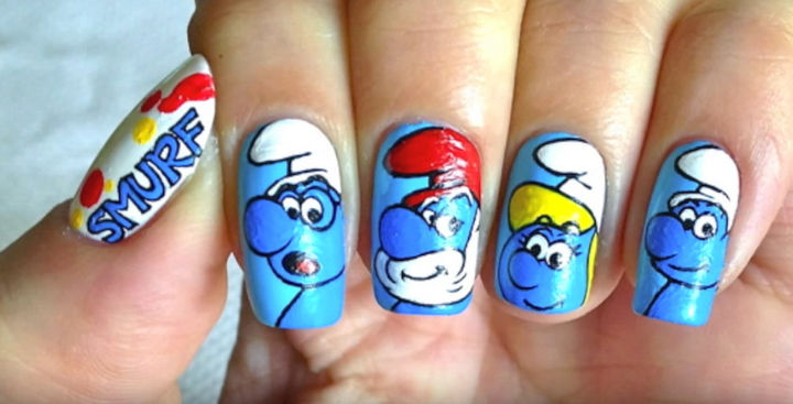 10) You’ll be feeling smurfy with this cartoon nail art inspired by The Smurfs!