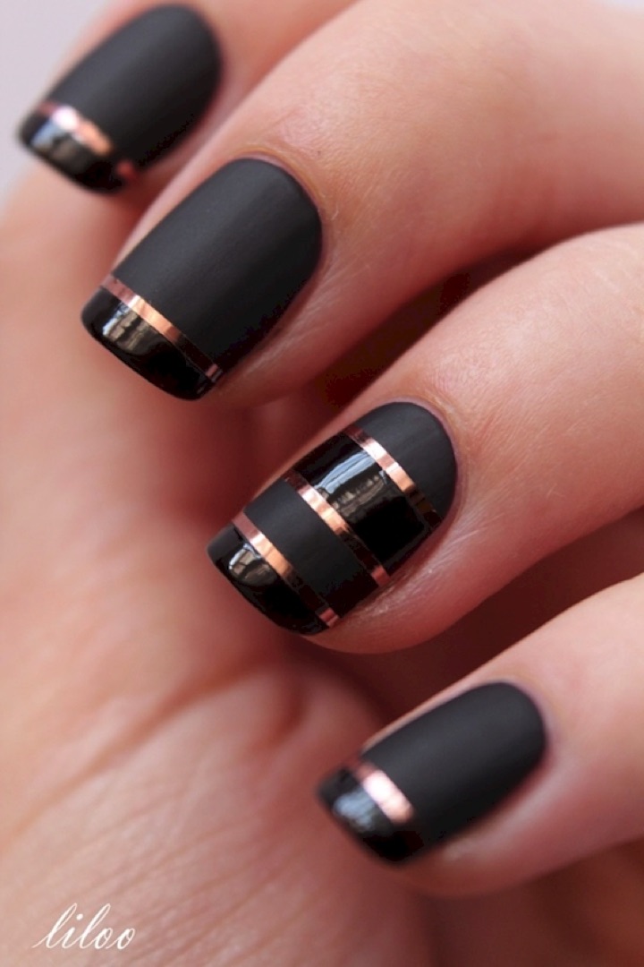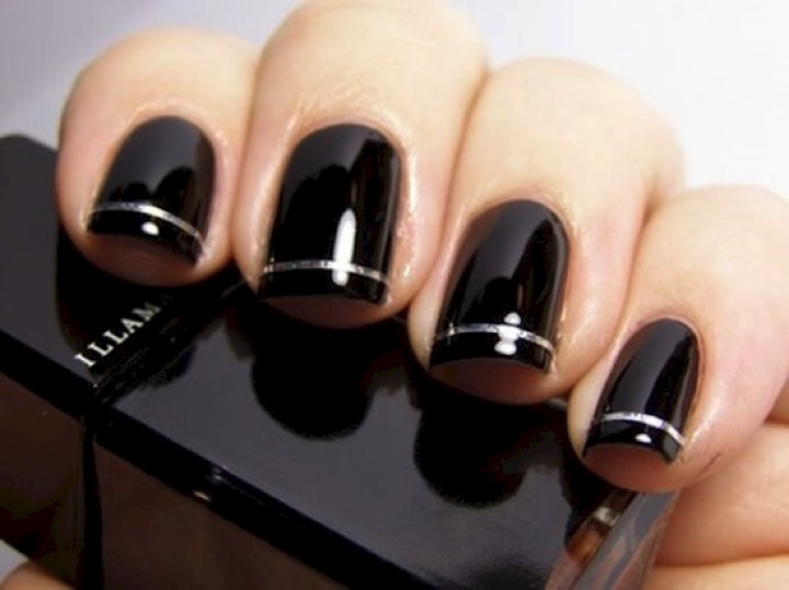 5) Black nails with a touch of elegance.
