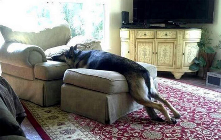 21) He isn’t allowed to have his paws on the furniture so he found a way to take a nap anyways.