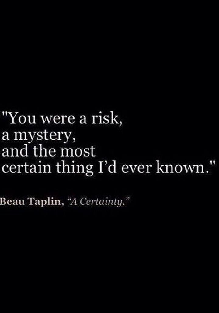 “You were a risk, a mystery, and the most certain thing I’d ever known.” – Beau Taplin