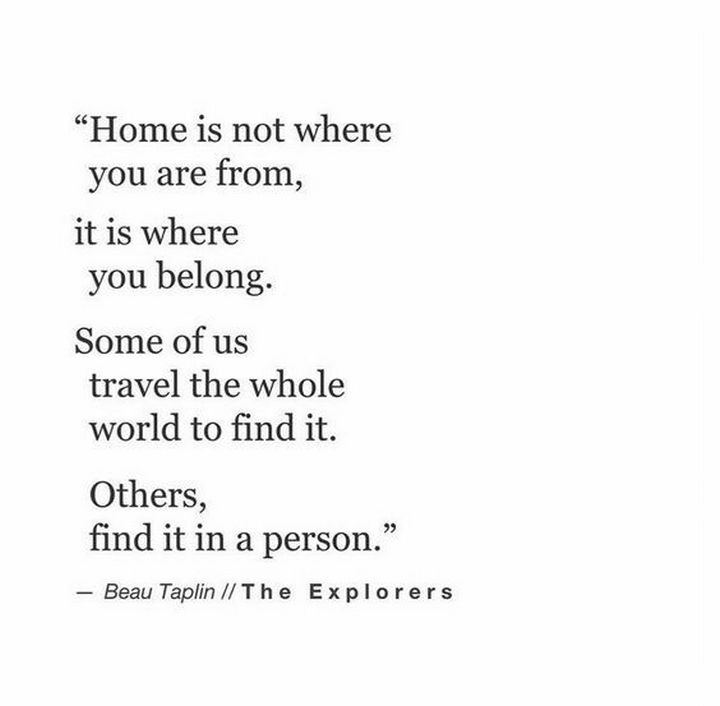 “Home is not where you are from, it is where you belong. Some of us travel the whole world to find it. Others, find it in a person.” – Beau Taplin