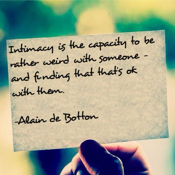 “Intimacy is the capacity to be rather weird with someone – and finding that that’s OK with them.” – Alain de Botton