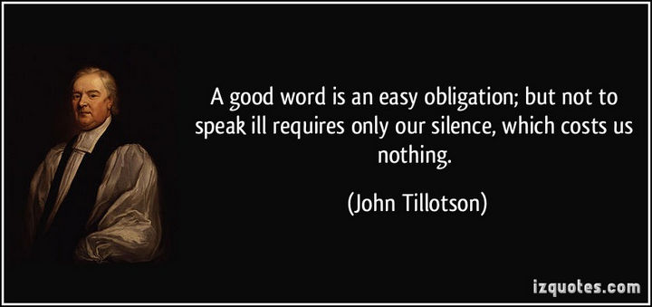 “A good word is an easy obligation; but not to speak ill requires only our silence; which costs us nothing.” – John Tillotson