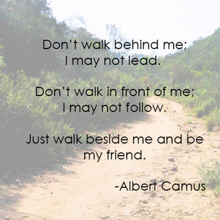 “Don’t walk in front of me; I may not follow. Don’t walk behind me; I may not lead. Just walk beside me and be my friend.” – relationship quotes by Albert Camus