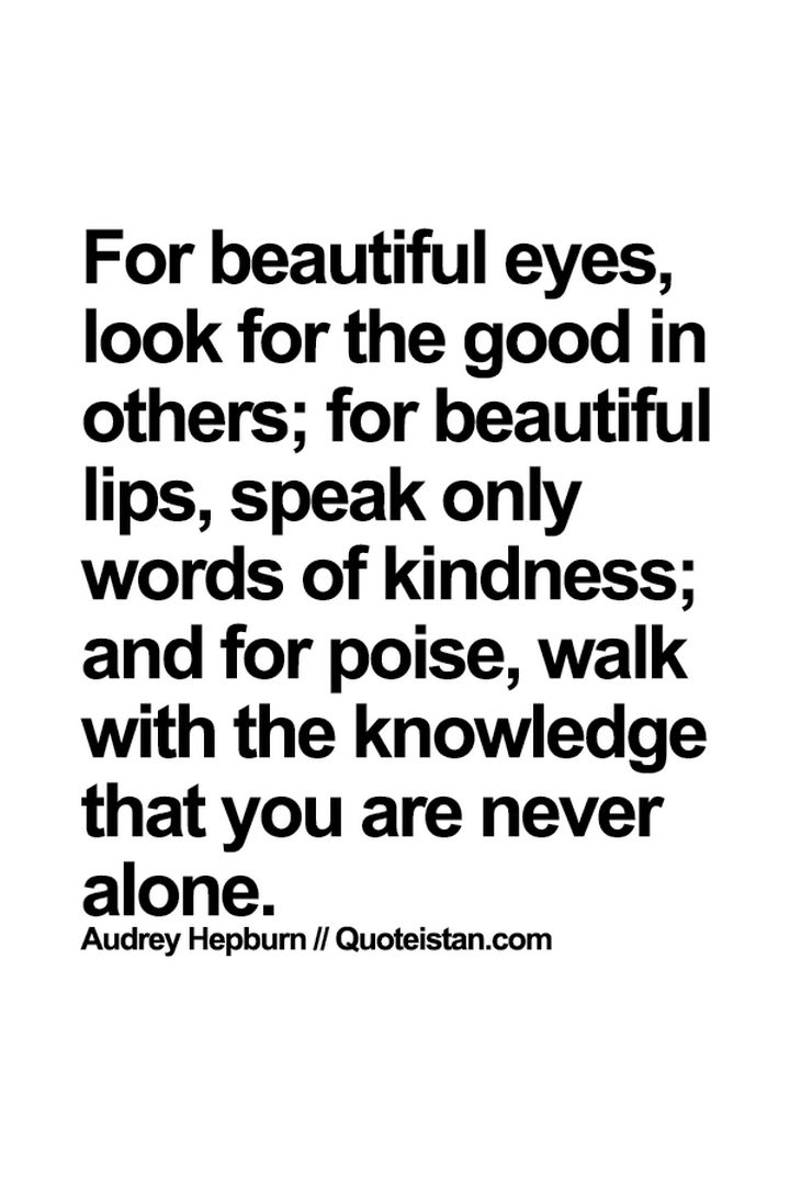 “For beautiful eyes, look for the good in others; for beautiful lips, speak only words of kindness; and for poise, walk with the knowledge that you are never alone.” – relationship quotes by Audrey Hepburn