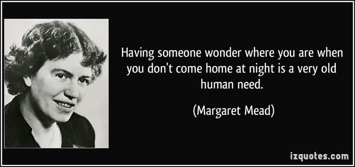 “Having someone wonder where you are when you don’t come home at night is a very old human need.” – relationship quotes by Margaret Mead