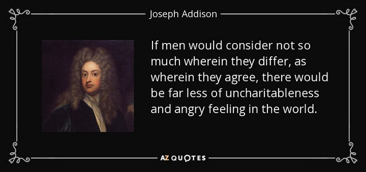 “If men would consider not so much wherein they differ, as wherein they agree, there would be far less of uncharitableness and angry feeling in the world.” – relationship quotes by Joseph Addison
