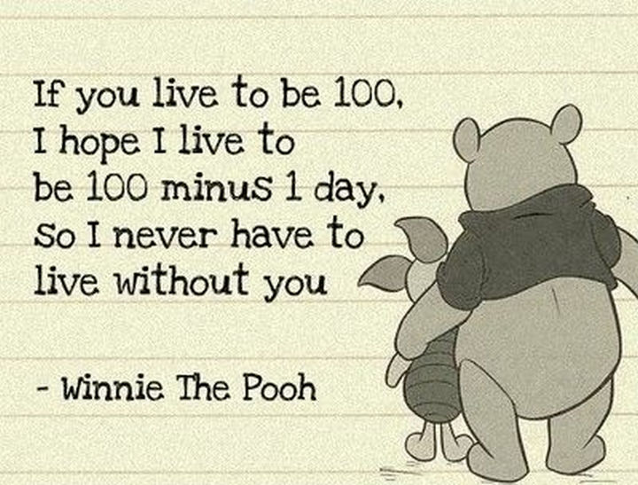 “If you live to be 100, I hope I live to be 100 minus 1 day, so I never have to live without you.” – relationship quotes by Winnie the Pooh