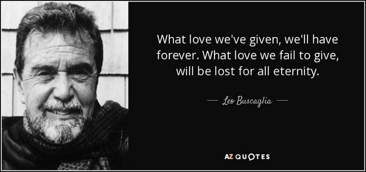 “What love we’ve given, we’ll have forever. What love we fail to give, will be lost for all eternity.” – Leo Buscaglia