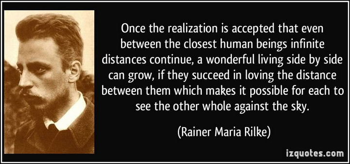 “Once the realization is accepted that even between the closest human beings infinite distances continue, a wonderful living side by side can grow, if they succeed in loving the distance between them which makes it possible for each to see the other whole against the sky.” – Rainer Maria Rilke