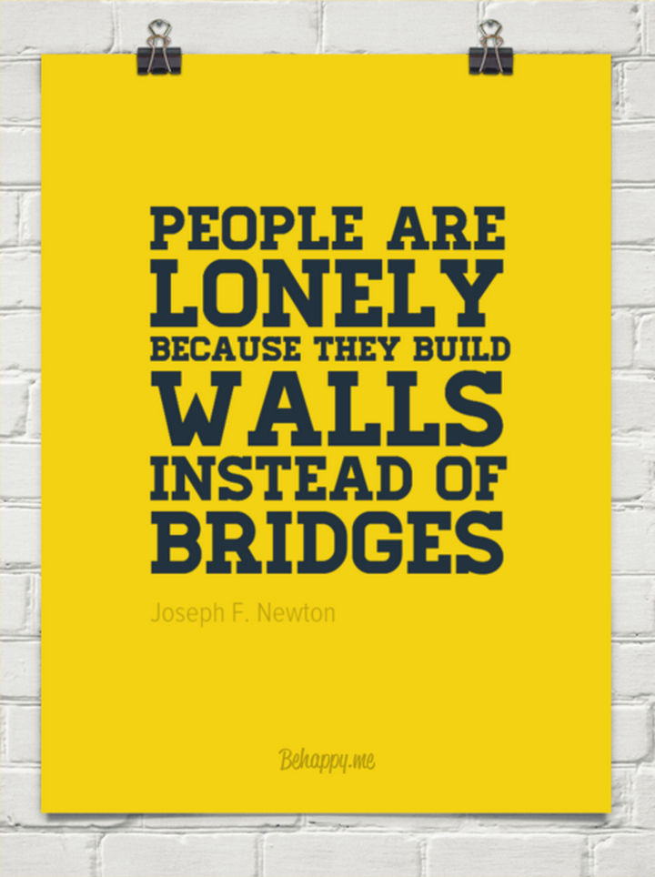 “People are lonely because they build walls instead of bridges.” – Joseph F. Newton Men
