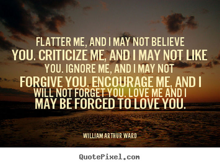 “Flatter me, and I may not believe you. Criticize me, and I may not like you. Ignore me, and I may not forgive you. Encourage me, and I will not forget you. Love me and I may be forced to love you.” – William Arthur Ward