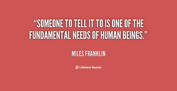 “Someone to tell it to is one of the fundamental needs of human beings.” – Miles Franklin