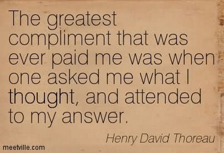 “The greatest compliment that was ever paid me was when someone asked me what I thought, and attended to my answer.” – Henry David Thoreau