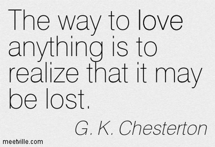 “The way to love anything is to realize that it may be lost.” – G. K. Chesterton