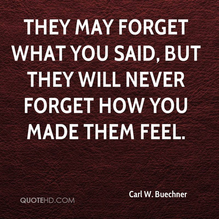 “They may forget what you said, but they will never forget how you made them feel.” – Carl W. Buechner