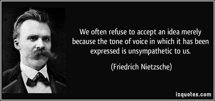 “We often refuse to accept an idea merely because the tone of voice in which it has been expressed is unsympathetic to us.” – Friedrich Nietzsche
