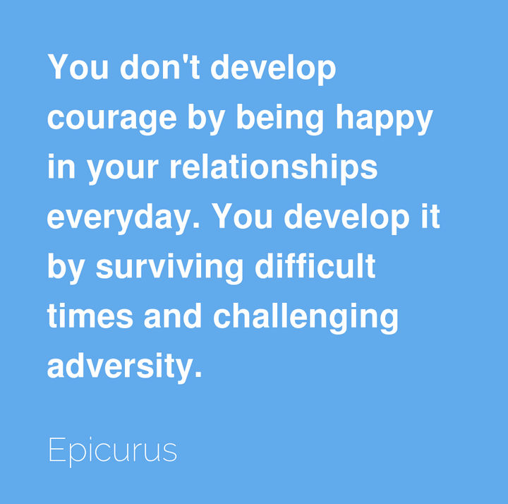 “You don’t develop courage by being happy in your relationships every day. You develop it by surviving difficult times and challenging adversity.” – Epicurus