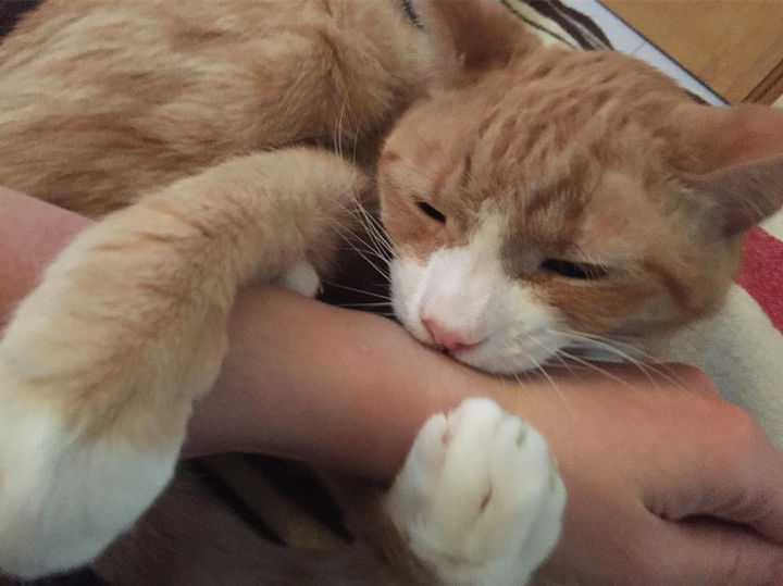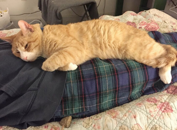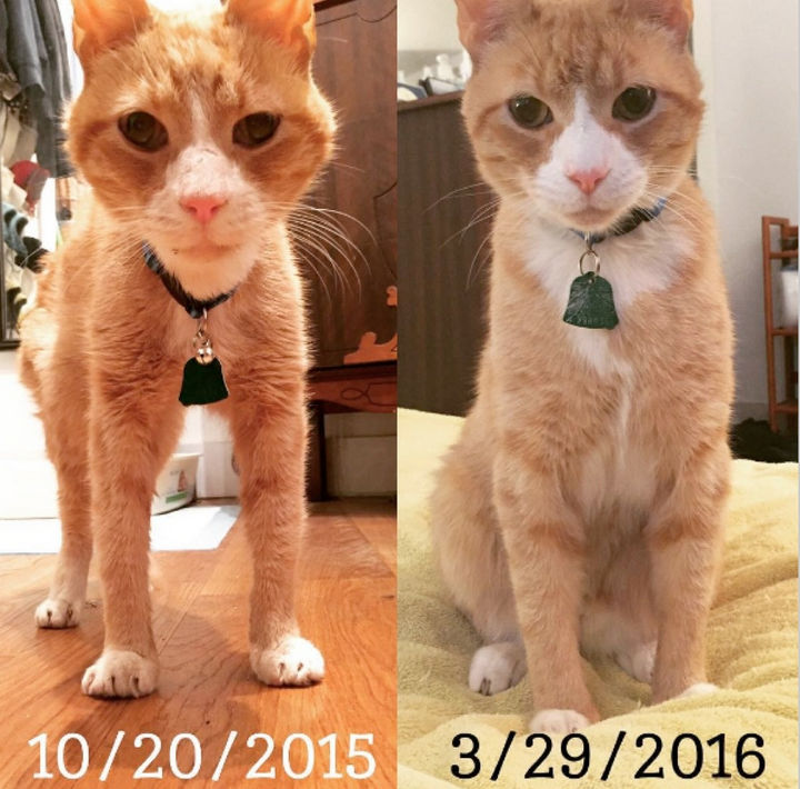 The emaciated cat only weighed 7 pounds at the time but Danny and Hannah knew with some loving care, he would be back on his feet.