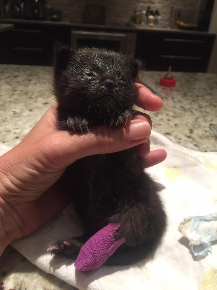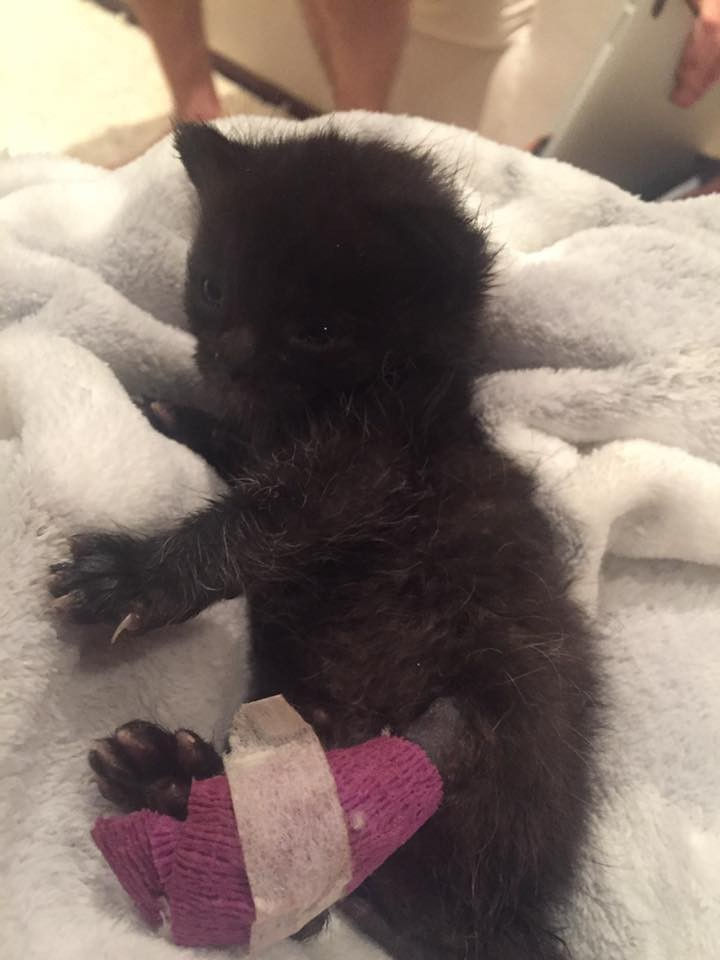 Unfortunately, two kittens had already passed away but they did find a third kitten with an injured paw clinging to life.
