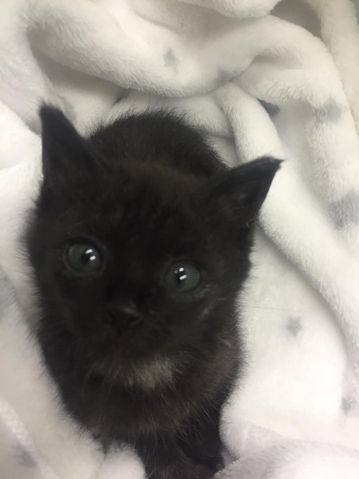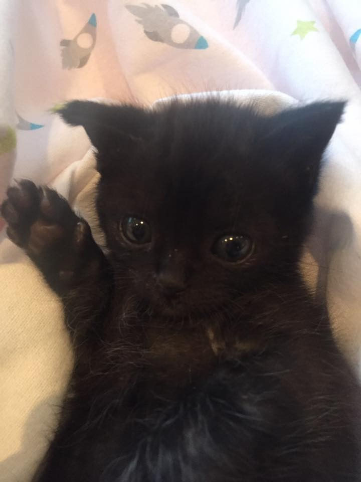 In October, the staff at the African Maritime Services in Cape Town began hearing loud cries coming from the factory. As the sound began to get louder as they searched for the source, they found it came from inside a large cable reel. When they looked inside, they found three kittens. Two had already passed away but the remaining tiny black kittenĀ had a severely injured paw and was clinging to life.
