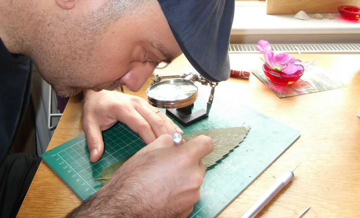 2) All Omid Asadi needs is a scalpel, a magnifying glass, and a needle to create intricate leaf carvings.