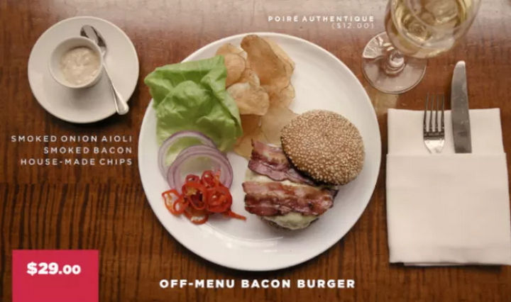 Next up is Gramercy Tavern in New York, NY. This restaurant features a secret menu $29 bacon burger that is legendary and the “Worth It” team is in for a treat! There are only 40 made each day. Each features freshly ground beef and bacon that has been cured in-house. Then, each is topped with cheese that has been melted in a mini cast iron skillet!
