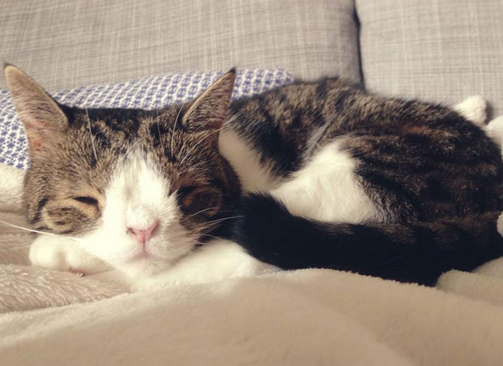 He was born without a nasal bridge bone which led to his unique and loveable face and while this does tend to make him sneeze more than most cats, he’s adorable all the same.