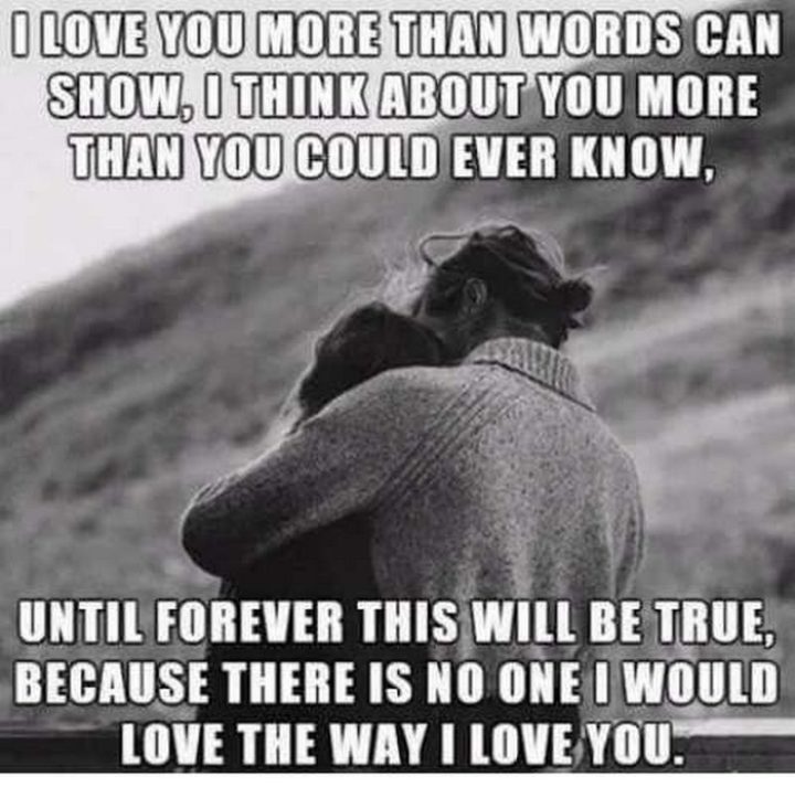 “I love you more than words can show, I think about you more than you could ever know, until forever this will be true because there is no one I would love the way I love you.”
