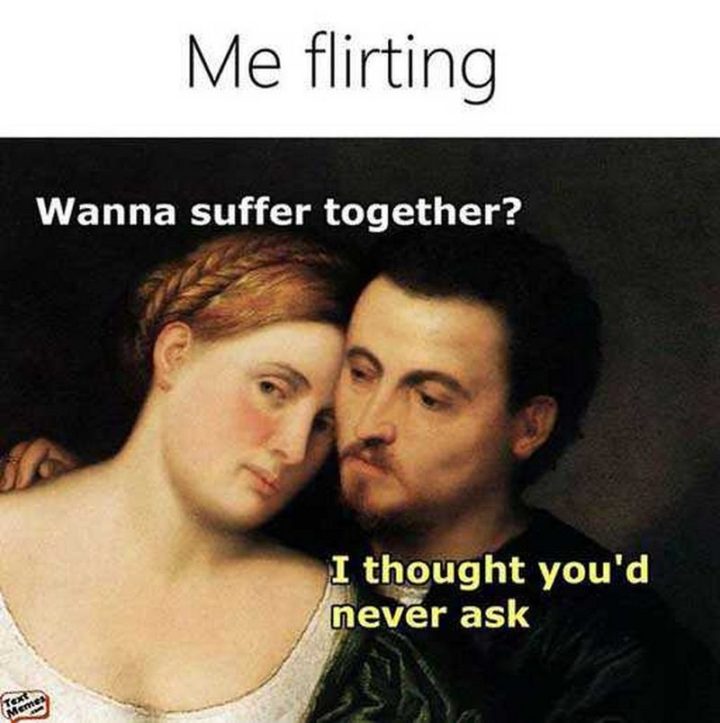 “Me flirting: Wanna suffer together? I thought you’d never ask.”