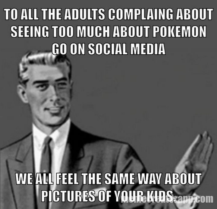 “To all the adults complaining about seeing too much about Pokémon Go on social media, we all feel the same way about pictures of your kids.”