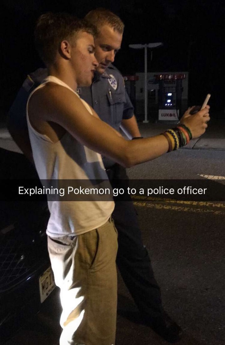 “Explaining Pokémon Go to a police officer.”