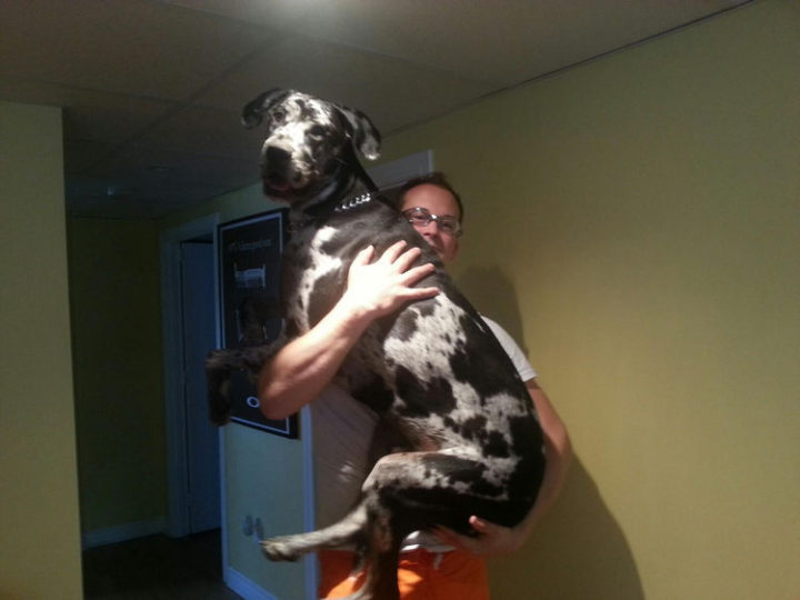 Dog owners love their dogs and the following dogs also love getting held in their human’s arms. No matter how big they are, here are 12 huge dogs that think they are still puppies and still love being in mommy and daddy’s arms!