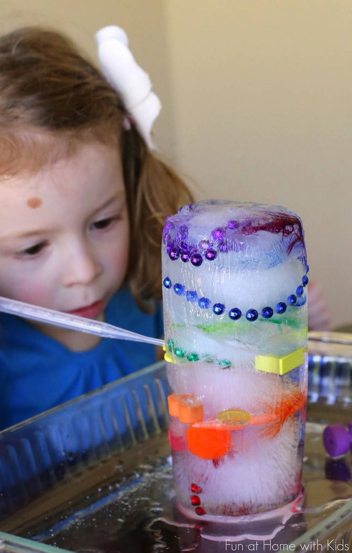 The limits are endless with what items to choose for your ice tower. Here is how to make your own rainbow ice tower excavation project.