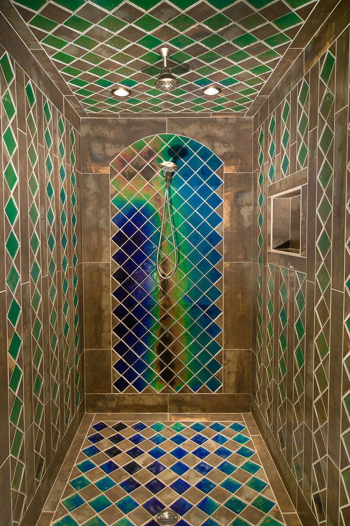 1) This shower features heat-sensitive tiles that change colors.