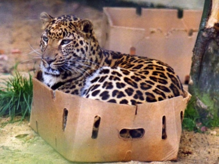 3) Big cats acting like house cats: A cardboard box still makes for one comfortable bed.