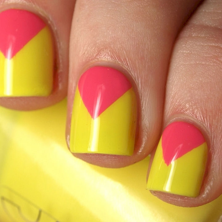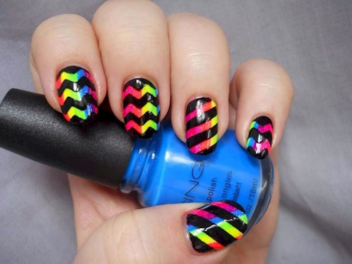 1) Chevron nails with a splash of color.
