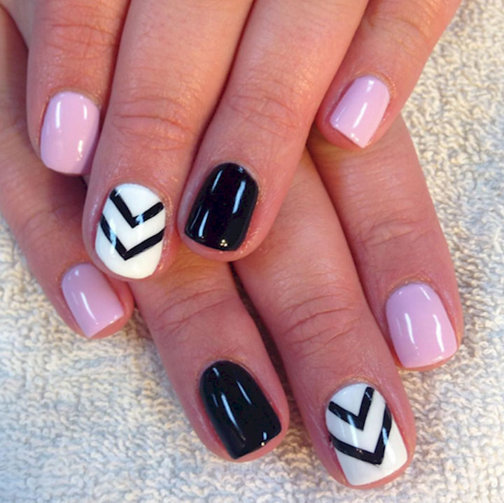 12) Get a retro-chic French manicure with a chevron pattern.