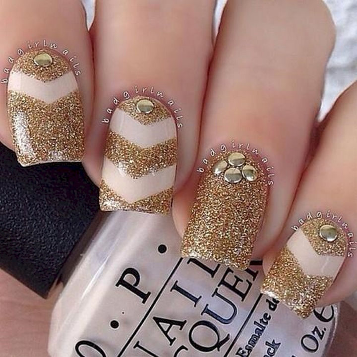 9) Glittery chevron nail designs.