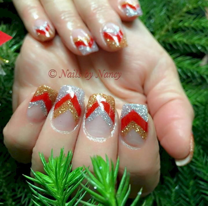 13) Festive holiday chevron nail art.