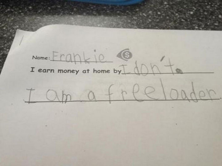 The following 18 kids probably weren’t paying attention in class but they definitely wrote an answer that made their teachers think and probably laugh. Just like these other kids with funny test answers, they probably got the answer wrong but they still get an A+ from me for their hilarious effort!
