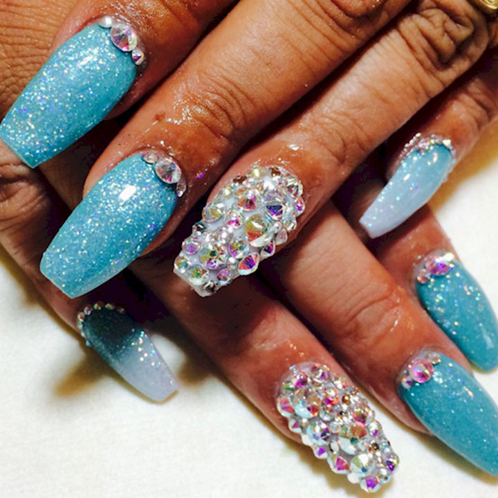 Please share these 18 ice blue nails fit for a snow princess with your friends and family.