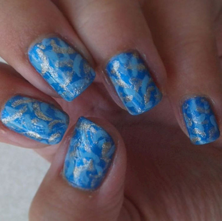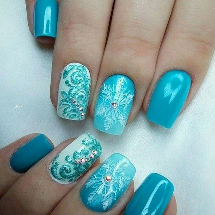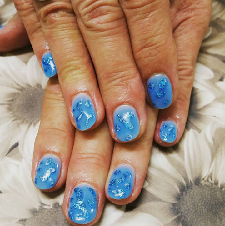 17) Beautiful “frozen” ice blue nails as unique as snowflakes.