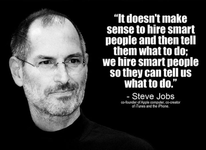 “It doesn’t make sense to hire smart people and tell them what to do; We hire smart people so they can tell us what to do.” – Steve Jobs