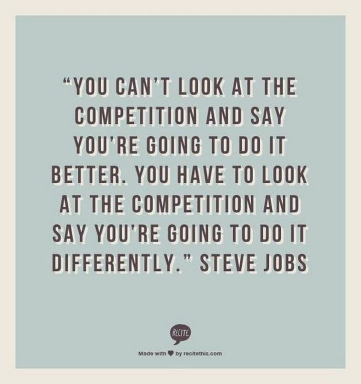 “You can’t look at the competition and say you’re going to do it better. You have to look at the competition and say you’re going to do it differently.” – Steve Jobs