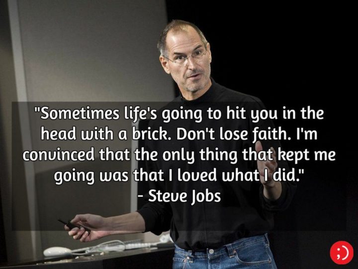 “Sometimes life’s going to hit you in the head with a brick. Don’t lose faith. I’m convinced that the only thing that kept me going was that I loved what I did.” – Steve Jobs