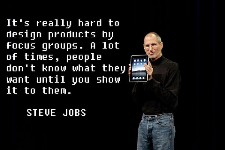 “It’s really hard to design products by focus groups. A lot of times, people don’t know what they want until you show it to them.” – Steve Jobs