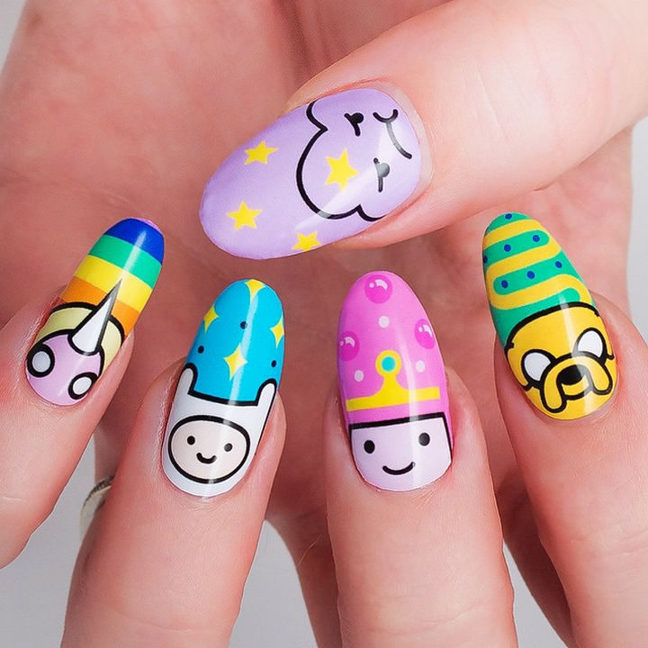 1) What time is it? Adventure Time cartoon nail art!