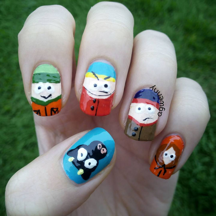 4) South Park cartoon nail art to proclaim your love for this long-running series.